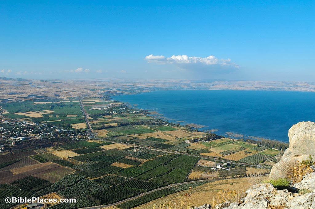 In contrast with the first photo, this view of the northwestern side of the Sea of Galilee shows the primary area of Jesus’ ministry. Nearly every event, teaching, and miracle recorded in the Gospels in connection with the lake occurred within view of Mount Arbel. A few examples: the calling of the disciples, the feeding of the 5,000, the walking on water, and every event recorded in Capernaum. In addition, the traditional area of the Sermon on the Mount is located here.
